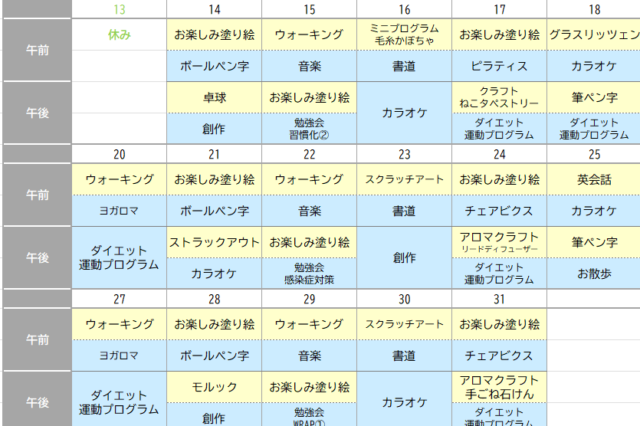 来月も、こころとからだをゆったりと整える時間を大切にしながら、楽しいプログラムをたくさんご用意しています。