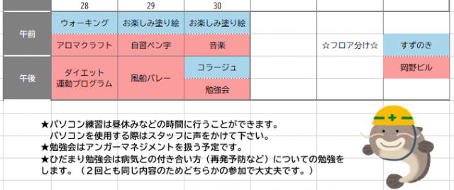 さて、9月のプログラム予定表が完成したので掲載します!