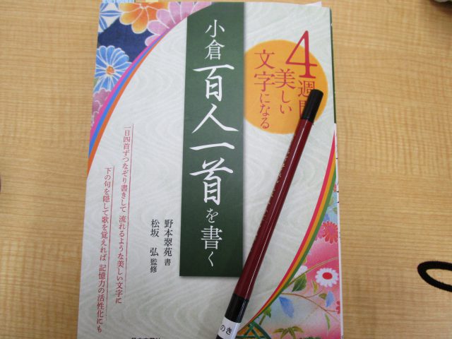 さて、今日は自習ペン字の様子をご紹介したいと思います!自習ペン字では現在、百人一首の歌をなぞり書きして練習をしています。学生時代以来に百人一首の歌にふれて、なんだか懐かしいなというメンバーさんもいらっしゃるようです。文字の練習だけでなく和歌も楽しめるプログラムになっています☆