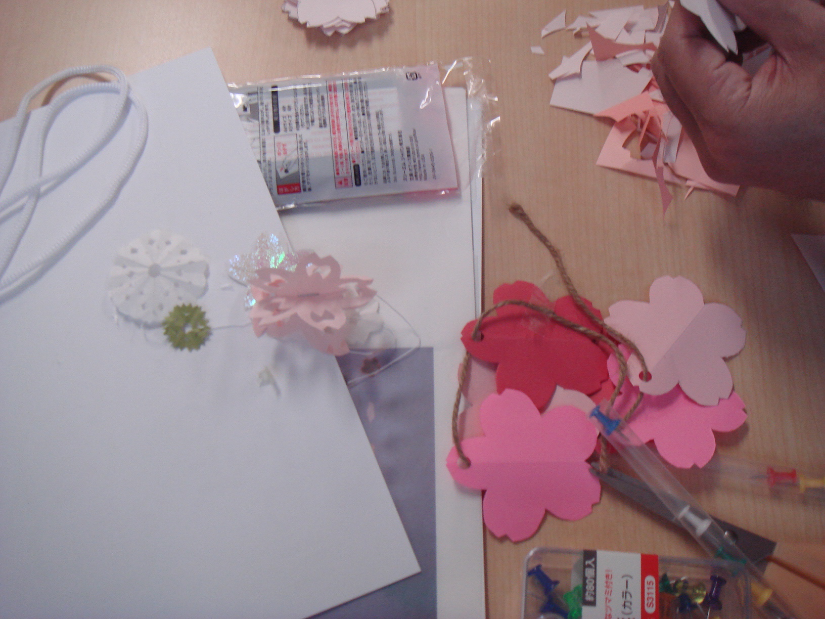 桜の花びらを切って作ったり、桜のモビールを作ったり、細かい作業が苦手な方でも作れる桜をたくさん用意しました!