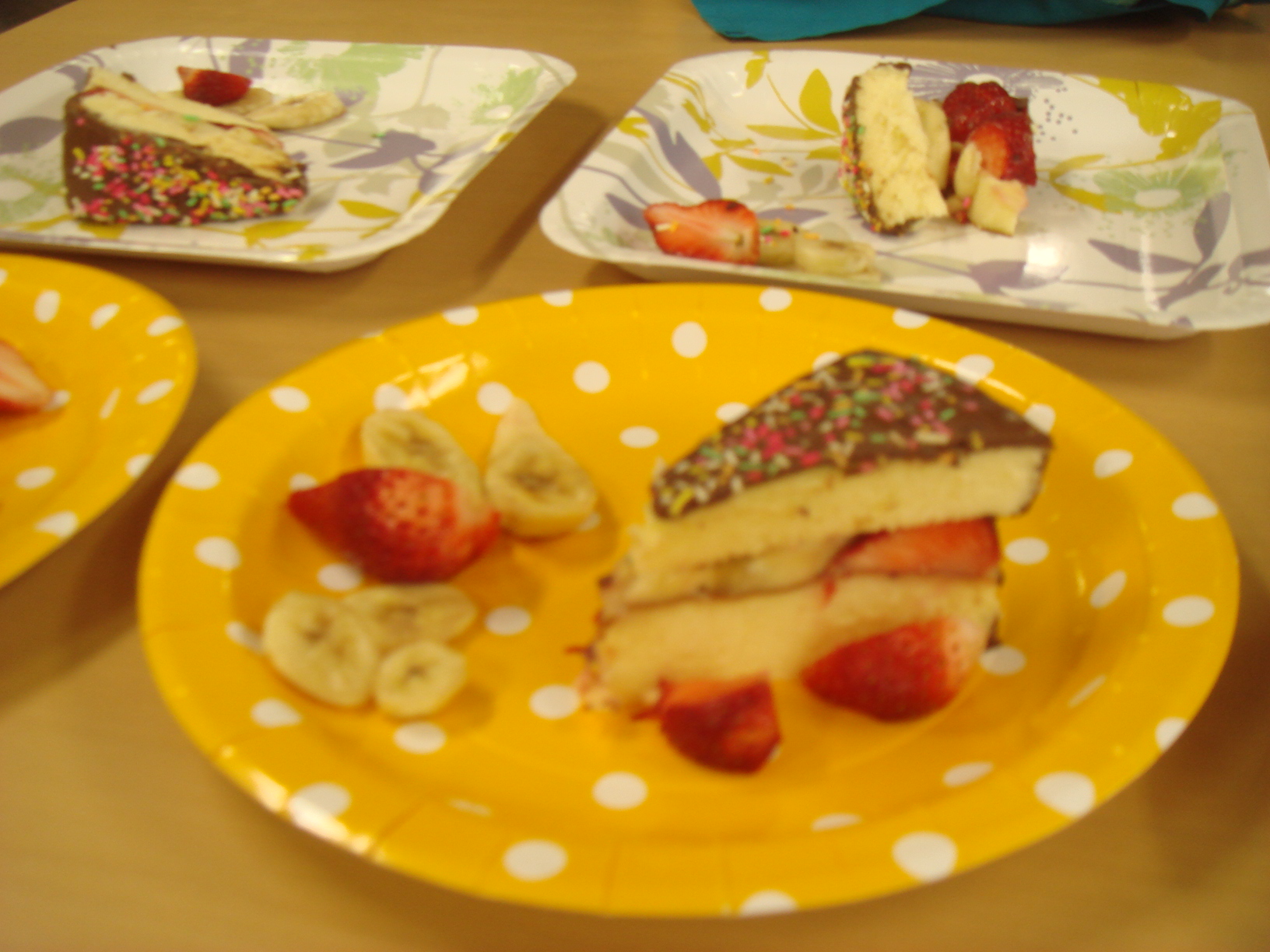 とはいっても、買ってきたスポンジにフルーツを挟んでチョコレートをコーティングした、ケーキ作りです。