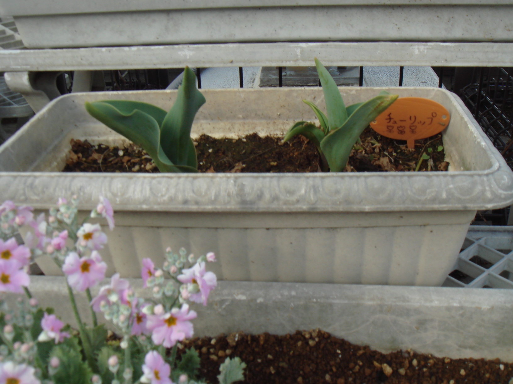 デイケアの屋上には、冬に植えたチューリップが顔を出しています。