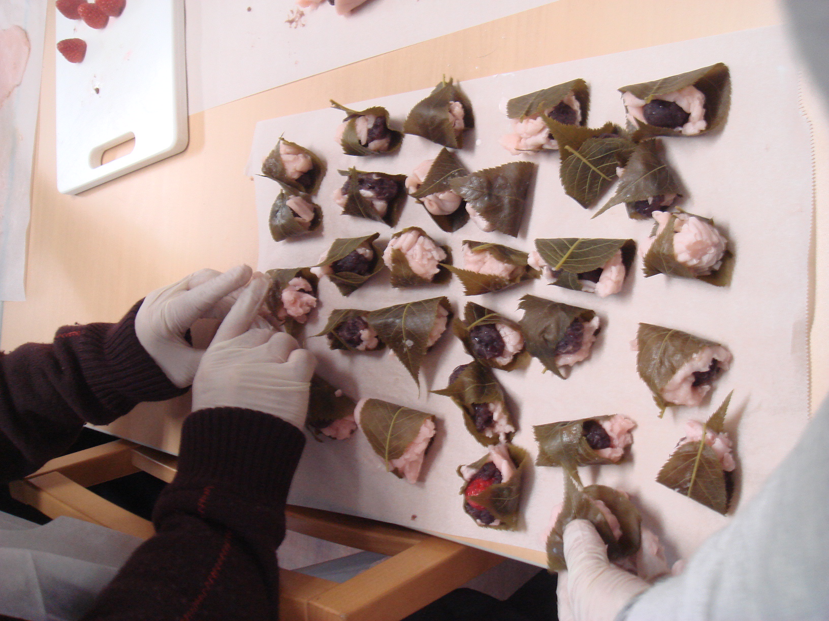 桜餅といちご大福のグループに分かれて、作業を開始。