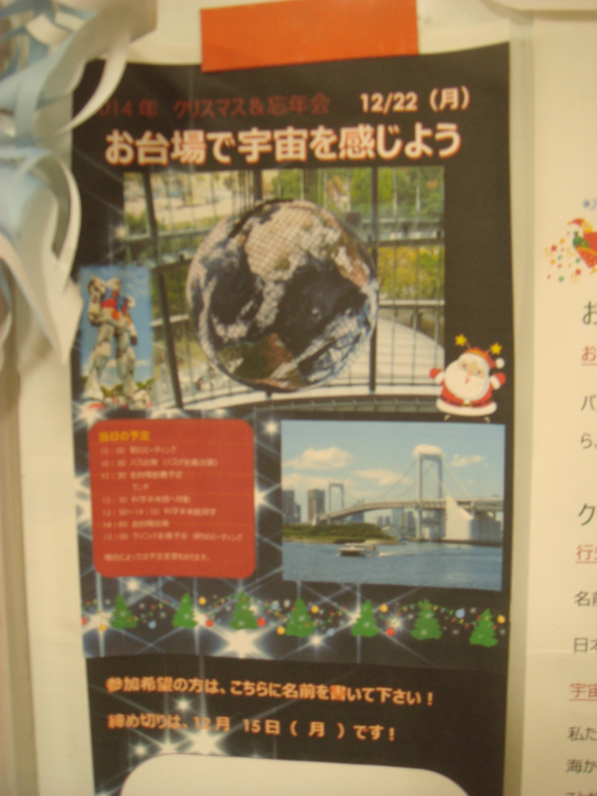 さて、デイケアでは先日もブログで取り上げたクリスマス&忘年会の準備が進み、生活支援型「ひだまり」、社会復帰型「アドバンス」共にイベントプランが決まりました!