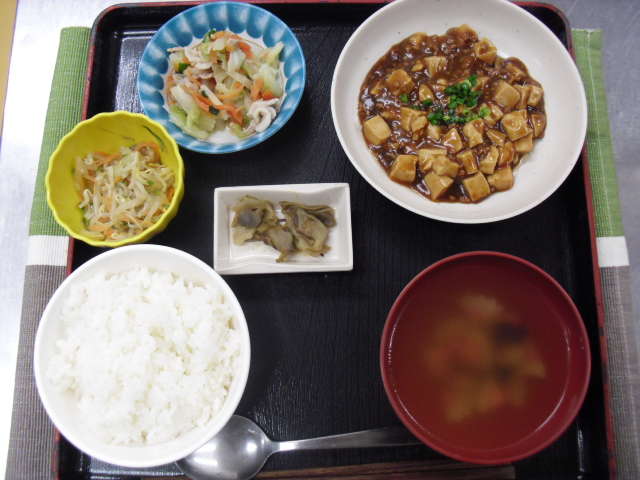 ◇御飯 ◇スープ ◇麻婆豆腐 ◇野菜炒め ◇三色ナムル ◇ザーサイ