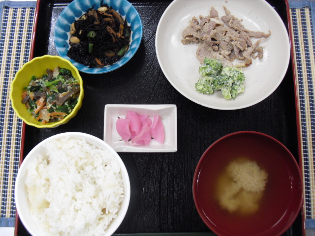 ◇御飯 ◇味噌汁 ◇豚肉の漬焼き ◇ひじき煮 ◇五目とろろ ◇しそ桜