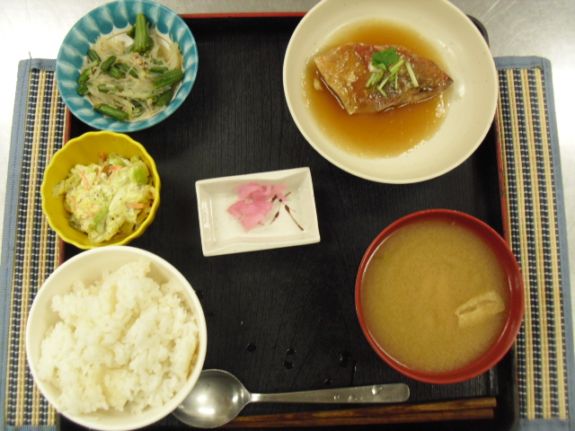 ◇御飯 ◇味噌汁 ◇赤魚のおろし煮 ◇春雨炒め炒め ◇キャベツのマスタード和え ◇しそ桜