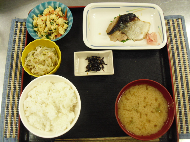 ◇御飯 ◇味噌汁 ◇サバの生姜焼き ◇にら玉炒め ◇もやし酢の物 ◇昆布佃煮