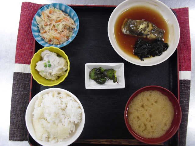 ◇御飯 ◇味噌汁 ◇カレイの煮付け ◇ビーフン炒め ◇里芋の葱塩和え ◇青かっぱ
