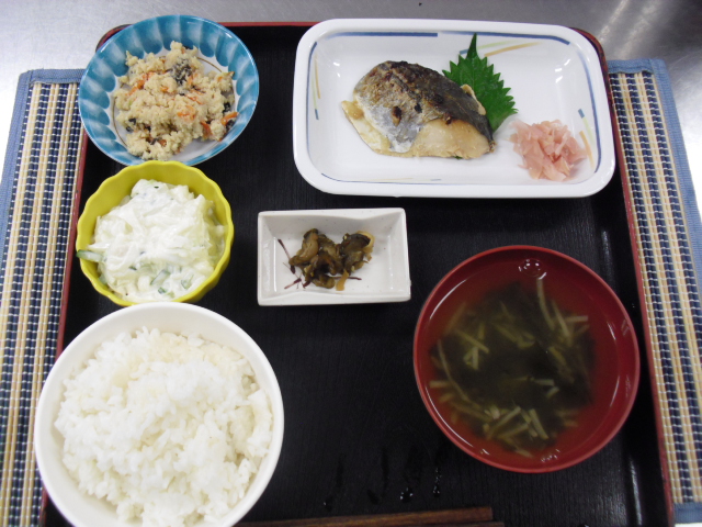 ◇御飯 ◇すまし汁 ◇サワラの葱味噌焼き ◇うの花 ◇大根と帆立のマヨネーズ和え ◇古漬け