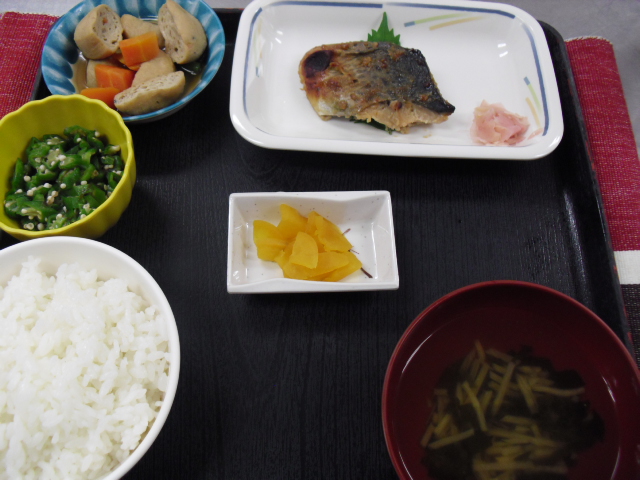 ◇御飯 ◇すまし汁 ◇サバの葱味噌焼き ◇がんも煮 ◇オクラおかか和え ◇つぼ漬