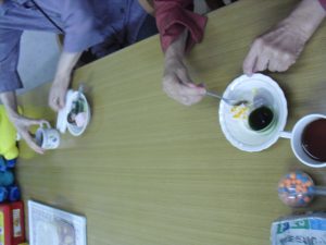 毎回好評のお楽しみおやつです。 今回は ◇マンゴーケーキ ◇レアストロベリーケーキ ◇ショコラロールケーキ ◇抹茶ムース ◇葛まんじゅう の5種類の中からお好きなものを3種類選んで召し上がっていただきました。 一番人気はマンゴーケーキでした。