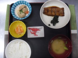 ◇御飯 ◇味噌汁 ◇にしん蒲焼 ◇がんも煮 ◇みかんいりなます ◇べに生姜 エネルギー 597kcal