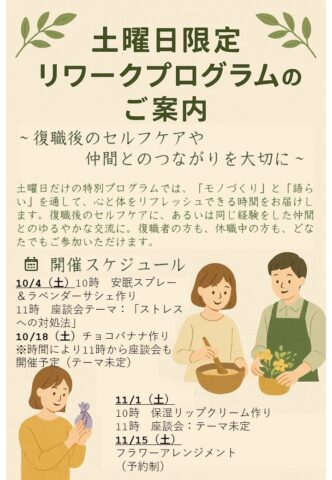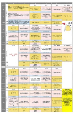 再休職予防・職場復帰後に気をつけたいポイントとこころみ10月のプログラム表