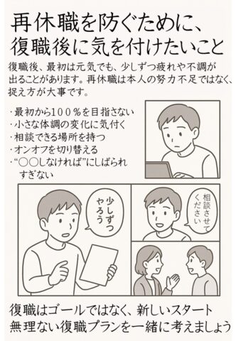 今回は「再休職を防ぐために、復帰後に気をつけたいこと」をお伝えします。