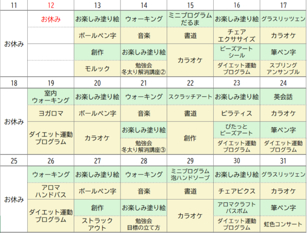 そして、新年最初の1週間は新年スペシャルウィーク!毎日ちょっといいことのある一週間になっていますので、是非新年もデイケアにお越しください。
