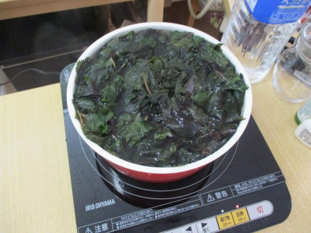 鍋で煮だしたのですが、紫蘇の量が多くて溢れ出しそうになってしまいました🍁