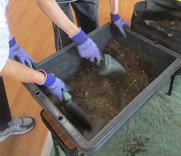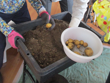 じゃがいもが植えてあった容器の土を広げてじゃがいもを探していきます☆