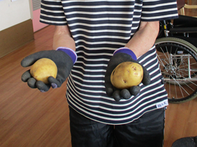 その中でも大きいものを男性利用者様に持ってもらいました。