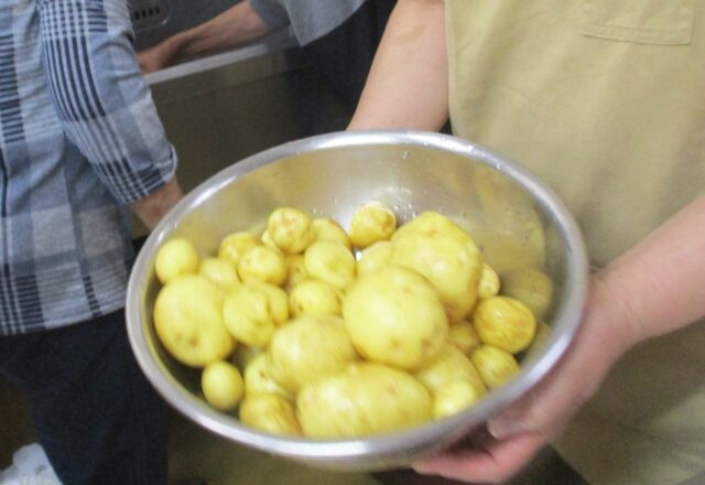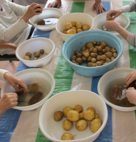 話に花を咲かせながらじゃがいもの土を落としていきます。