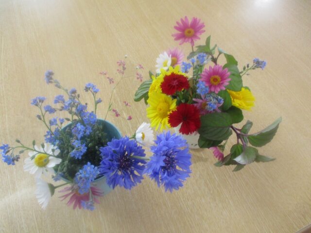 9月の敬老会の際には利用者様に1本ずつ挿していただき合作を作りました💐