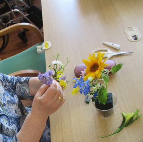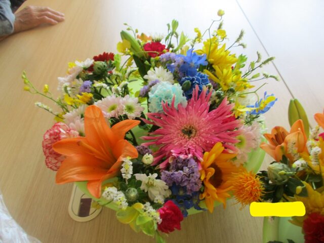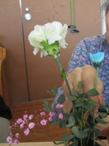 今回は月に1度行っているフラワーアレンジメントプログラムの紹介をさせていただきます。