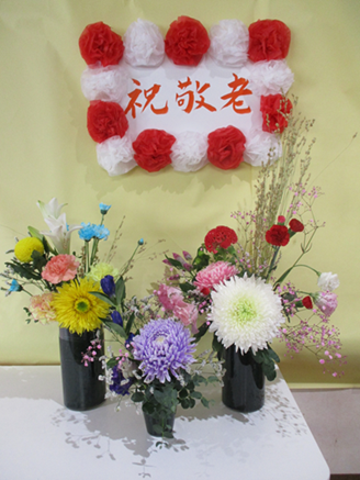 敬老会のイベント当日までフロアに飾り、キレイなお花と一緒に記念撮影も行いました📸