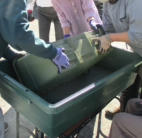 大きさが分かりやすいようにと、男性利用者様に持っていただきました。
